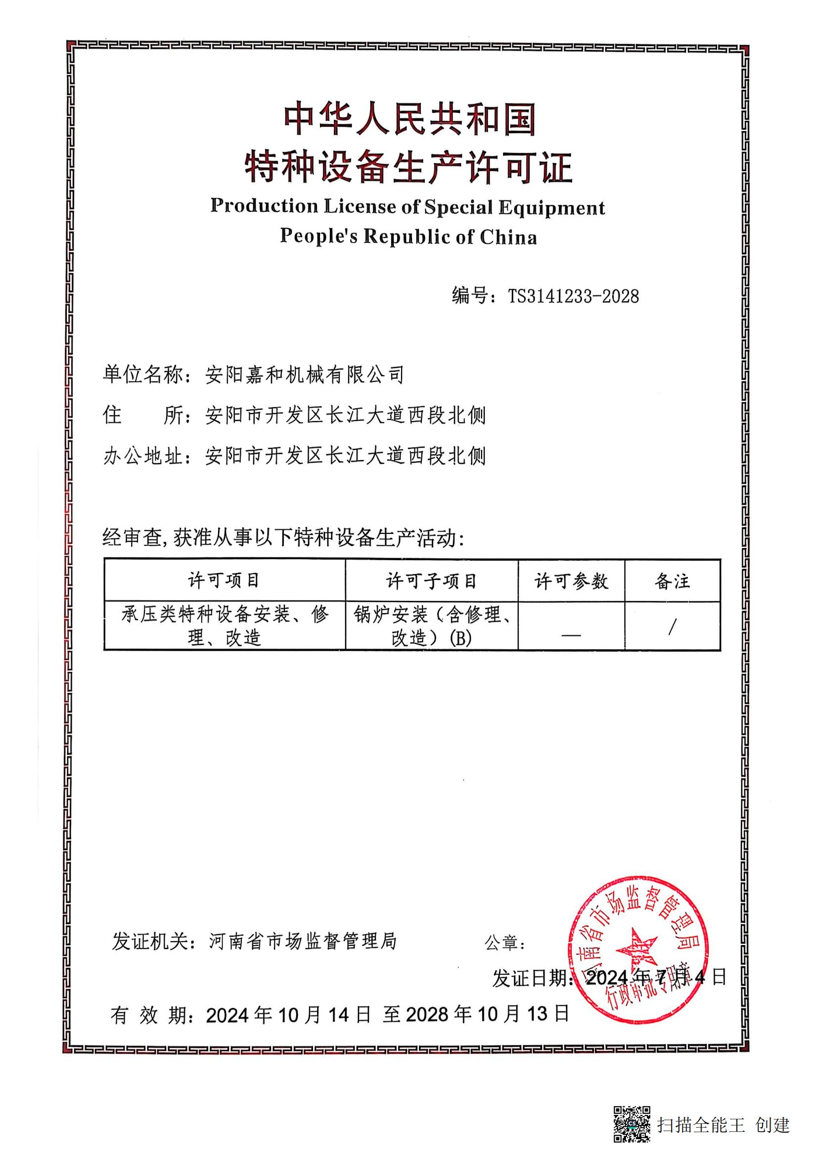 AAA級信用企業,擁有D1、D2類壓力容器制造許可證。